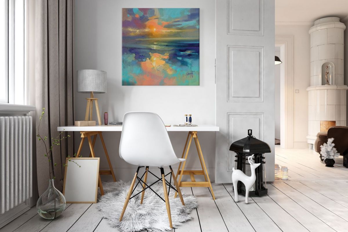 Oryginalny obraz na płótnie Cerulean Cyan Study Oryginalny i licencjonowany obraz na płótnie idealny na każdą ścianę. Nasze obrazy wyróżniają: Fantastyczne barwy Wysokie nasycenie barw i ostrość, kolory utrzymują się przez długie lata. Płótno wysokiej jakości Płótno bawełniane 300g/m2 jest trwałe i mocne, jego struktura jest naturalna. Trwałe kolory, Dodatkowo lakierowana powierzchnia sprawia, że kolory są żywe przez dziesięciolecia. Solidna rama, Wykonana jest z naturalnego, sosnowego drewna, jest mocna i gruba a obraz solidny i wytrzymały. Zadrukowane boki, obrazy posiadają zadrukowane boki, nie potrzebują żadnej dodatkowej oprawy. Szczegóły techniczne: wydruk na płótnie bawełnianym 300g/m2 sosnowe krosna o grubości 2 cm i szerokości 3,5 cm druk cyfrowy wymiary obrazów 85×85 cm