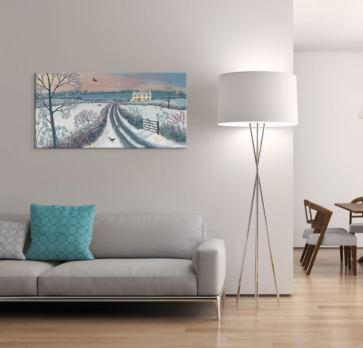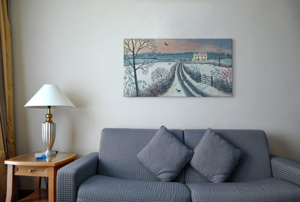 Coming Home For Winter – Obraz na płótnie naciągnięty na sosnowe krosna. Gotowy do zawieszenia na ścianę. Wykonany z najwyższą dbałością o detale.Obraz jest ostry a barwy nasycone. Ten egzemplarz posiada zadrukowane boki, nie trzeba go dodatkowo oprawiać. Płótno bawełniane na który został naniesiony obraz jest bardzo mocne i posiada ciekawą fakturę. Blejtrama wykonana jest natomiast z grubego drzewa sosnowego. Jest solidna, jej szerokość to 3,5 cm a grubość 2 cm. Kupując ten produkt masz pewność, że kupujesz z legalnego źródła i wspierasz artystów. Obraz jest oryginalny i posiada licencję. Lubisz wyróżniać się ciekawymi, ekskluzywnymi dekoracjami na ścianę ? Ten obraz jest idealny dla Ciebie. Nikt nie przejdzie obojętnie obok niego, jest po prostu piękny. Dane techniczne Płótno bawełniane 300g/m2 Sosnowe krosnao grubości 2 cm i szerokości 3,5 cm Obraz zadrukowany cyfrowo Wymiary obrazu 50×100 cm
