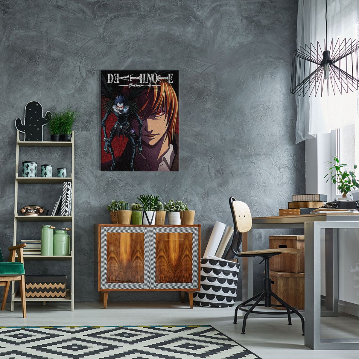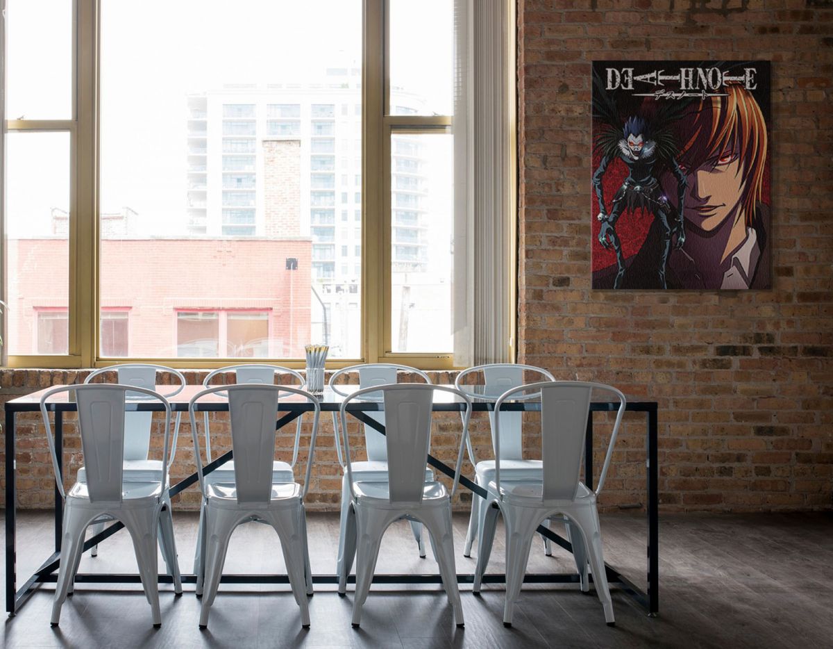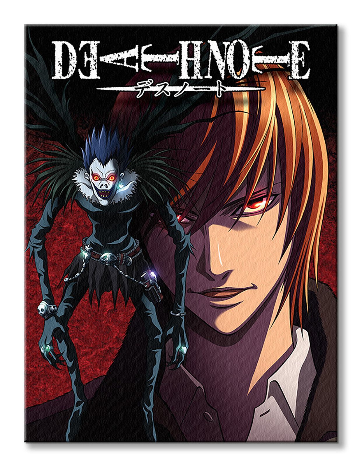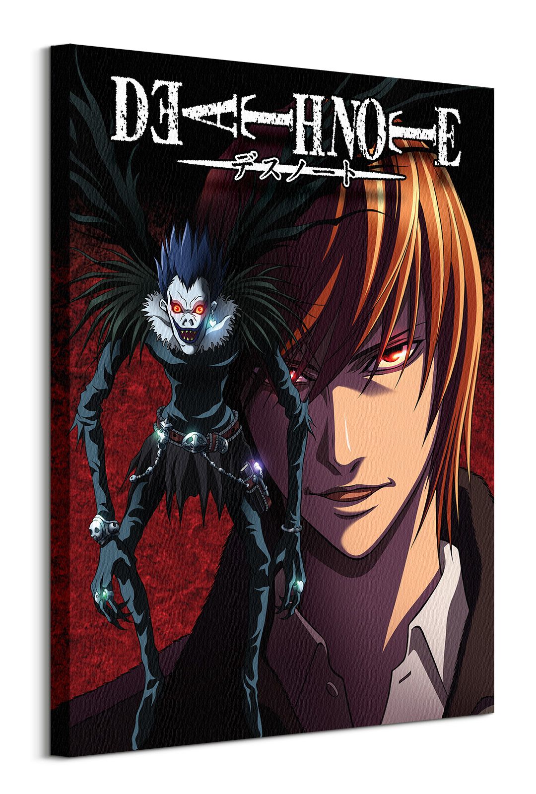 Death Note Light and Ryuk – obraz na płótnie Naciągnięty na sosnowe krosna. Gotowy do zawieszenia na ścianę. Wykonany z najwyższą dbałością o detale. Obraz jest ostry a barwy nasycone. Ten egzemplarz posiada zadrukowane boki, nie trzeba go dodatkowo oprawiać. Płótno bawełniane na który został naniesiony obraz jest bardzo mocne i posiada ciekawą fakturę. Blejtrama wykonana jest natomiast z grubego drzewa sosnowego. Jest solidna, jej szerokość to 3,5 cm a grubość 2 cm. Kupując ten produkt masz pewność, że kupujesz z legalnego źródła i wspierasz artystów. Obraz jest oryginalny i posiada licencję. Lubisz wyróżniać się ciekawymi, ekskluzywnymi dekoracjami na ścianę? Ten obraz jest idealny dla Ciebie. Nikt nie przejdzie obojętnie obok niego, jest po prostu piękny. Dane techniczne: Płótno bawełniane 300g/m2. Sosnowe krosna o grubości 2 cm i szerokości 3,5 cm. Obraz zadrukowany cyfrowo. Wymiary obrazu 60×80 cm. Marka: Pyramid Posters.