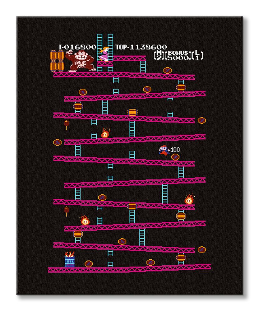 Oryginalny obraz na płótnie Donkey Kong Oryginalny i licencjonowany obraz na płótnie idealny na każdą ścianę. Nasze obrazy wyróżniają: Fantastyczne barwy Wysokie nasycenie barw i ostrość, kolory utrzymują się przez długie lata. Płótno wysokiej jakości Płótno bawełniane 300g/m2 jest trwałe i mocne, jego struktura jest naturalna. Trwałe kolory, Dodatkowo lakierowana powierzchnia sprawia, że kolory są żywe przez dziesięciolecia. Solidna rama, Wykonana jest z naturalnego, sosnowego drewna, jest mocna i gruba a obraz solidny i wytrzymały. Zadrukowane boki, obrazy posiadają zadrukowane boki, nie potrzebują żadnej dodatkowej oprawy. Szczegóły techniczne: wydruk na płótnie bawełnianym 300g/m2 sosnowe krosna o grubości 2 cm i szerokości 3,5 cm druk cyfrowy wymiary obrazów 40×50 cm