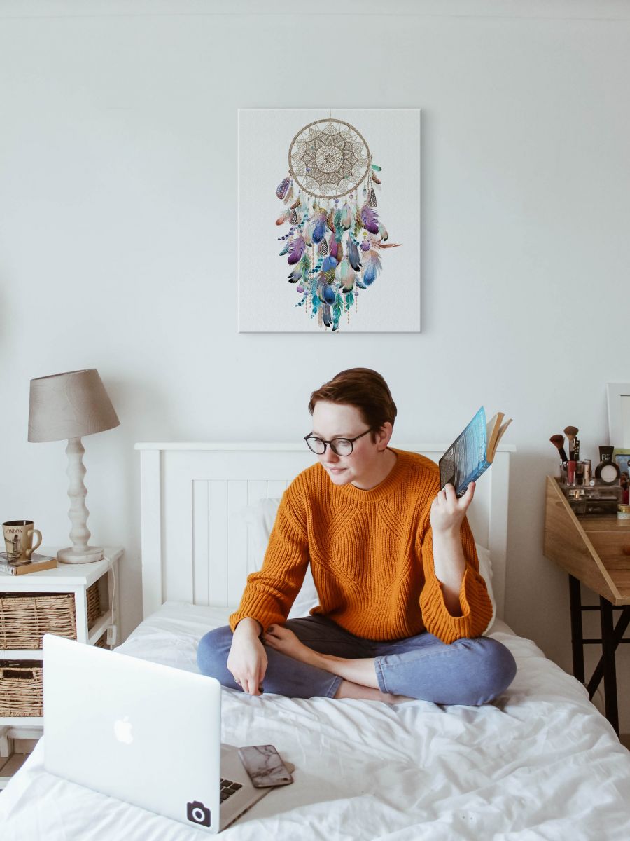 Dreamcatcher Colourful- obraz na płótnie Naciągnięty na sosnowe krosna. Gotowy do zawieszenia na ścianę. Wykonany z najwyższą dbałością o detale. Obraz jest ostry a barwy nasycone. Ten egzemplarz posiada zadrukowane boki, nie trzeba go dodatkowo oprawiać. Płótno bawełniane na który został naniesiony obraz jest bardzo mocne i posiada ciekawą fakturę. Blejtrama wykonana jest natomiast z grubego drzewa sosnowego. Jest solidna, jej szerokość to 3,5 cm a grubość 2 cm. Kupując ten produkt masz pewność, że kupujesz z legalnego źródła i wspierasz artystów. Obraz jest oryginalny i posiada licencję. Lubisz wyróżniać się ciekawymi, ekskluzywnymi dekoracjami na ścianę? Ten obraz jest idealny dla Ciebie. Nikt nie przejdzie obojętnie obok niego, jest po prostu piękny. Dane techniczne Płótno bawełniane 300g/m2 Sosnowe krosnao grubości 2 cm i szerokości 3,5 cm Obraz zadrukowany cyfrowo Wymiary obrazu 40×50 cm