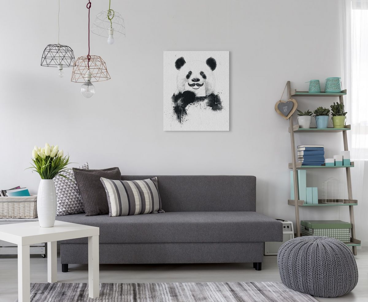Funny Panda – Obraz na płótnie naciągnięty na sosnowe krosna. Gotowy do zawieszenia na ścianę. Wykonany z najwyższą dbałością o detale.Obraz jest ostry a barwy nasycone. Ten egzemplarz posiada zadrukowane boki, nie trzeba go dodatkowo oprawiać. Płótno bawełniane na który został naniesiony obraz jest bardzo mocne i posiada ciekawą fakturę. Blejtrama wykonana jest natomiast z grubego drzewa sosnowego. Jest solidna, jej szerokość to 3,5 cm a grubość 2 cm. Kupując ten produkt masz pewność, że kupujesz z legalnego źródła i wspierasz artystów. Obraz jest oryginalny i posiada licencję. Lubisz wyróżniać się ciekawymi, ekskluzywnymi dekoracjami na ścianę ? Ten obraz jest idealny dla Ciebie. Nikt nie przejdzie obojętnie obok niego, jest po prostu piękny. Dane techniczne Płótno bawełniane 300g/m2 Sosnowe krosnao grubości 2 cm i szerokości 3,5 cm Obraz zadrukowany cyfrowo Wymiary obrazu 40×50 cm