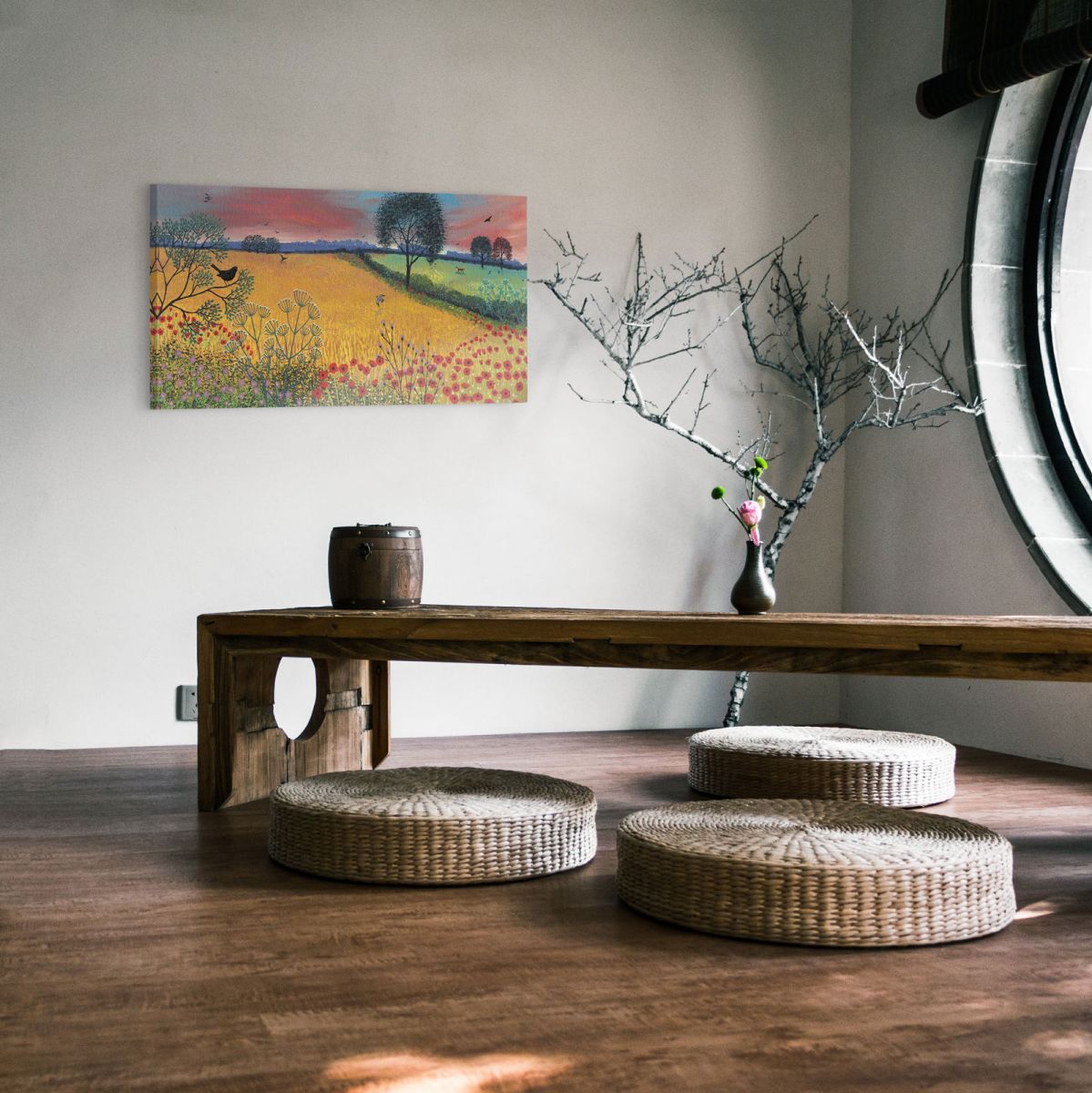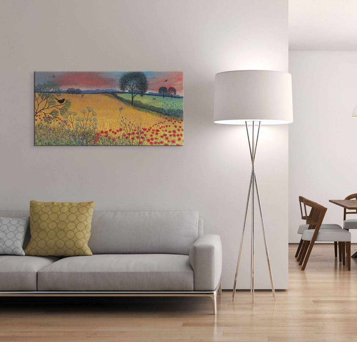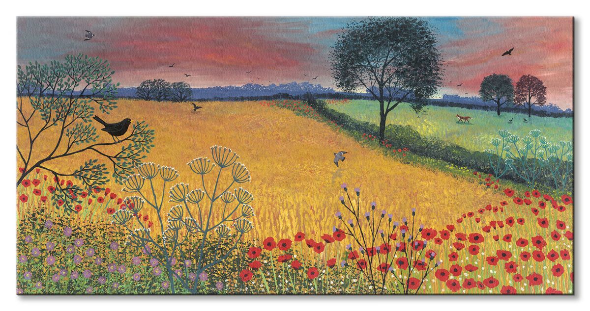 Harvest Song – Obraz na płótnie naciągnięty na sosnowe krosna. Gotowy do zawieszenia na ścianę. Wykonany z najwyższą dbałością o detale.Obraz jest ostry a barwy nasycone. Ten egzemplarz posiada zadrukowane boki, nie trzeba go dodatkowo oprawiać. Płótno bawełniane na który został naniesiony obraz jest bardzo mocne i posiada ciekawą fakturę. Blejtrama wykonana jest natomiast z grubego drzewa sosnowego. Jest solidna, jej szerokość to 3,5 cm a grubość 2 cm. Kupując ten produkt masz pewność, że kupujesz z legalnego źródła i wspierasz artystów. Obraz jest oryginalny i posiada licencję. Lubisz wyróżniać się ciekawymi, ekskluzywnymi dekoracjami na ścianę ? Ten obraz jest idealny dla Ciebie. Nikt nie przejdzie obojętnie obok niego, jest po prostu piękny. Dane techniczne Płótno bawełniane 300g/m2 Sosnowe krosnao grubości 2 cm i szerokości 3,5 cm Obraz zadrukowany cyfrowo Wymiary obrazu 50×100 cm