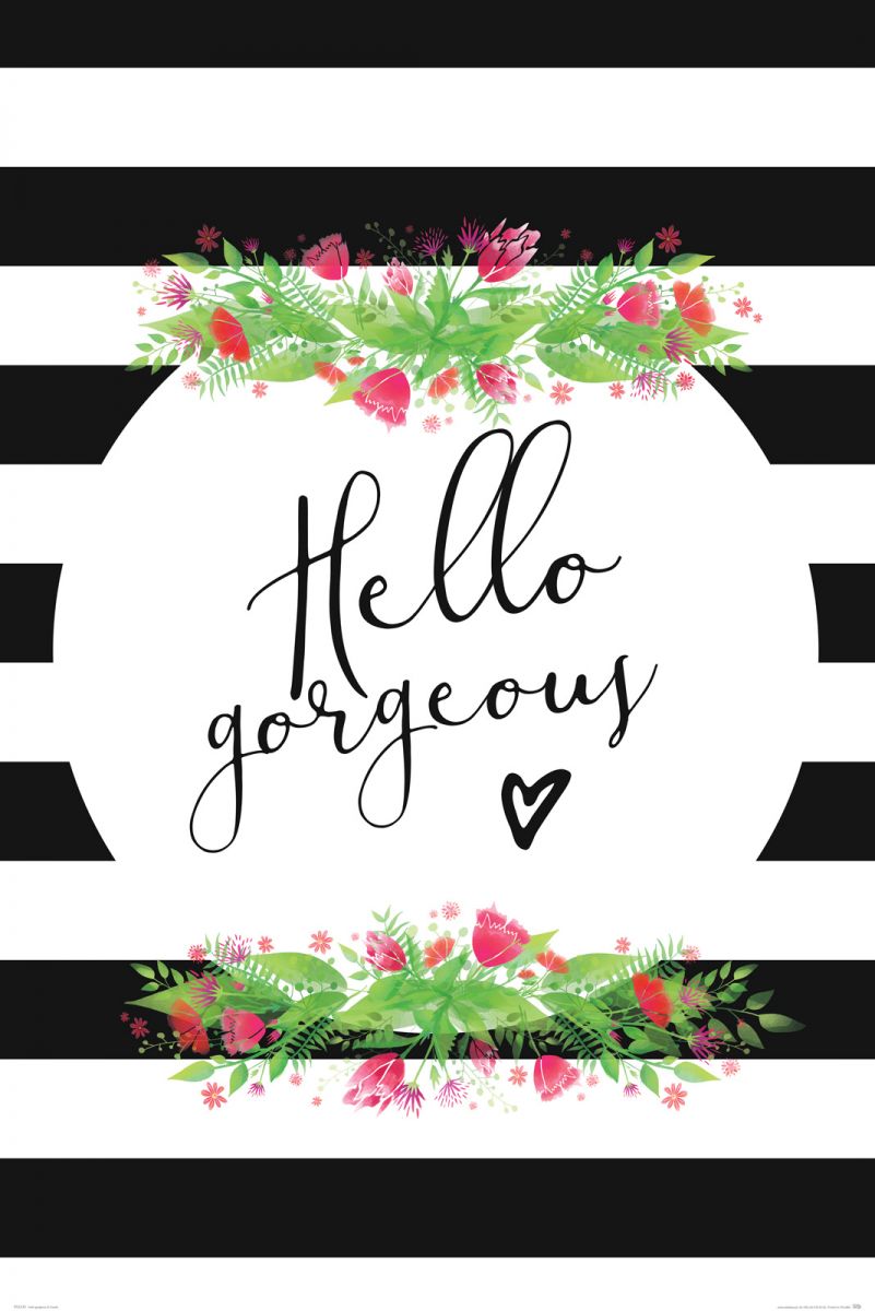 Plakat na ścianę, zatytułowany Hello gorgeous Ciekawy i oryginalny plakat na ścianę. Wyprodukowany na papierze o wysokiej gramaturze w cyfrowej jakości. Plakat wykonany przez polskiego producenta. Świetnie nadaje się do oprawienia w ramy lub antyramy. Specyfikacja papier satynowy 220g/m2 druk cyfrowy wymiary plakatu 61×91,5 cm