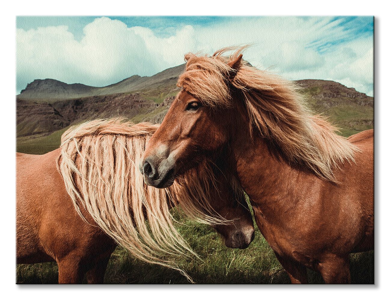 Oryginalny obraz na płótnie Horses with mane Oryginalny i licencjonowany obraz na płótnie idealny na każdą ścianę. Nasze obrazy wyróżniają: Fantastyczne barwy Wysokie nasycenie barw i ostrość, kolory utrzymują się przez długie lata. Płótno wysokiej jakości Płótno bawełniane 300g/m2 jest trwałe i mocne, jego struktura jest naturalna. Trwałe kolory, Dodatkowo lakierowana powierzchnia sprawia, że kolory są żywe przez dziesięciolecia. Solidna rama, Wykonana jest z naturalnego, sosnowego drewna, jest mocna i gruba a obraz solidny i wytrzymały. Zadrukowane boki, obrazy posiadają zadrukowane boki, nie potrzebują żadnej dodatkowej oprawy. Szczegóły techniczne: wydruk na płótnie bawełnianym 300g/m2 sosnowe krosna o grubości 2 cm i szerokości 3,5 cm druk cyfrowy wymiary obrazów 120×90 cm
