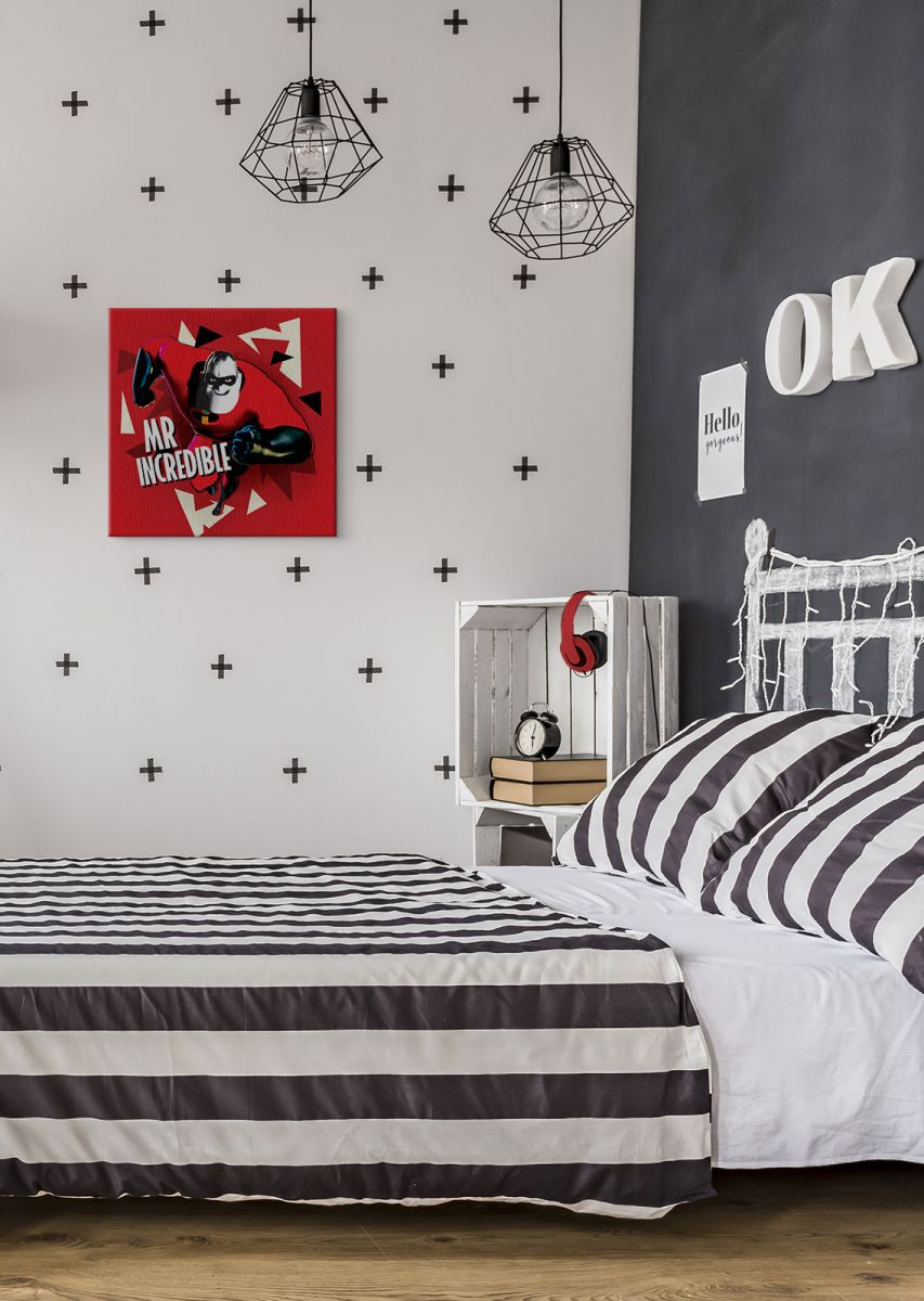 Iniemamocni 2 Mr Incredible In Action – obraz na płótnie Naciągnięty na sosnowe krosna. Gotowy do zawieszenia na ścianę. Wykonany z najwyższą dbałością o detale. Obraz jest ostry a barwy nasycone. Ten egzemplarz posiada zadrukowane boki, nie trzeba go dodatkowo oprawiać. Płótno bawełniane na który został naniesiony obraz jest bardzo mocne i posiada ciekawą fakturę. Blejtrama wykonana jest natomiast z grubego drzewa sosnowego. Jest solidna, jej szerokość to 3,5 cm a grubość 2 cm. Kupując ten produkt masz pewność, że kupujesz z legalnego źródła i wspierasz artystów. Obraz jest oryginalny i posiada licencję. Lubisz wyróżniać się ciekawymi, ekskluzywnymi dekoracjami na ścianę? Ten obraz jest idealny dla Ciebie. Nikt nie przejdzie obojętnie obok niego, jest po prostu piękny. Dane techniczne: Płótno bawełniane 300g/m2. Sosnowe krosna o grubości 2 cm i szerokości 3,5 cm. Obraz zadrukowany cyfrowo. Wymiary obrazu 40×40 cm. Marka: Pyramid Posters.