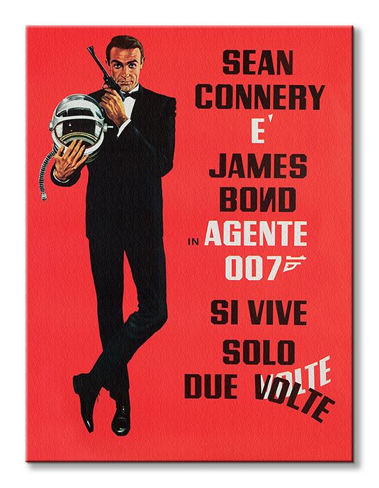 Oryginalny obraz na płótnie noszący nazwę James Bond (Si Vive Solo Due Volte). Szukasz oryginalnej, ekskluzywnej dekoracji na ścianę ? Ten obraz jest dla Ciebie! Fantastyczne barwy, obrazy charakteryzuje wysokie nasycenie barw i ostrość, nie sposób oderwać od nich wzrok. Kolory utrzymują się przez długie lata. Płótno wysokiej jakości, obrazy wykonane na płótnie bawełnianym 300g/m2 są mocne i trwałe, świetnie rozkłada się na nich farba a struktura płótna jest naturalna. Lubisz produkty markowe ? obraz jest oryginalny, to oficjalne wydanie licencjonowanego producenta. Trwałe kolory, dzięki dodatkowo lakierowanej powierzchni kolory są żywe przez dziesięciolecia. Solidna rama, blejtrama na której naciągane jest płótno wykonana jest z naturalnego, sosnowego drewna. Jest mocna i gruba. Obraz jest trwały i solidny. Zadrukowane boki, każdy egzemplarz posiada zadrukowane boki, dzięki temu można powiesić obraz na ścianie bez dodatkowej oprawy. Jak zawiesić obraz na ścianie ? Nic prostszego ! Wystarczy gwóźdź w ścianie na którym opiera się górna listwa obrazu. Bezpieczna wysyłka Dbamy o bezpieczeństwo obrazów podczas transportu. Każda przesyłka jest ubezpieczona a obraz zapakowany jest w solidne, specjalnie zaprojektowane pudełko. Szczegóły techniczne: wydruk na płótnie bawełnianym 300g/m2 sosnowe krosna o grubości 2 cm i szerokości 3,5 cm druk cyfrowy wymiary obrazów 60×80 cm marka: Pyramid Posters
