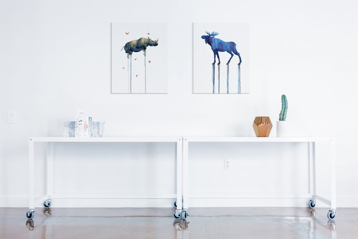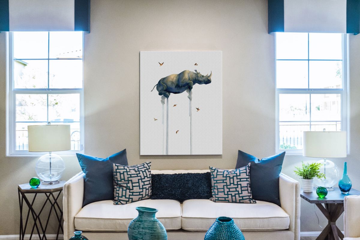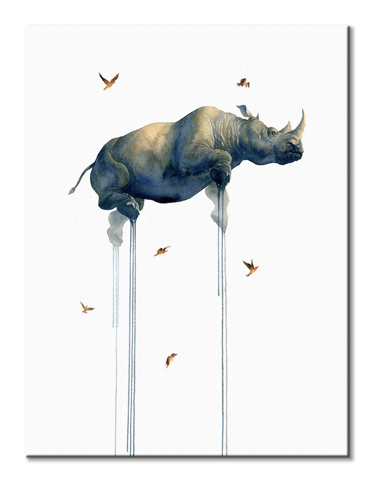 Journey 2 Rhino- obraz na płótnie Naciągnięty na sosnowe krosna. Gotowy do zawieszenia na ścianę. Wykonany z najwyższą dbałością o detale. Obraz jest ostry a barwy nasycone. Ten egzemplarz posiada zadrukowane boki, nie trzeba go dodatkowo oprawiać. Płótno bawełniane na który został naniesiony obraz jest bardzo mocne i posiada ciekawą fakturę. Blejtrama wykonana jest natomiast z grubego drzewa sosnowego. Jest solidna, jej szerokość to 3,5 cm a grubość 2 cm. Kupując ten produkt masz pewność, że kupujesz z legalnego źródła i wspierasz artystów. Obraz jest oryginalny i posiada licencję. Lubisz wyróżniać się ciekawymi, ekskluzywnymi dekoracjami na ścianę? Ten obraz jest idealny dla Ciebie. Nikt nie przejdzie obojętnie obok niego, jest po prostu piękny. Dane techniczne Płótno bawełniane 300g/m2 Sosnowe krosnao grubości 2 cm i szerokości 3,5 cm Obraz zadrukowany cyfrowo Wymiary obrazu 60×80 cm