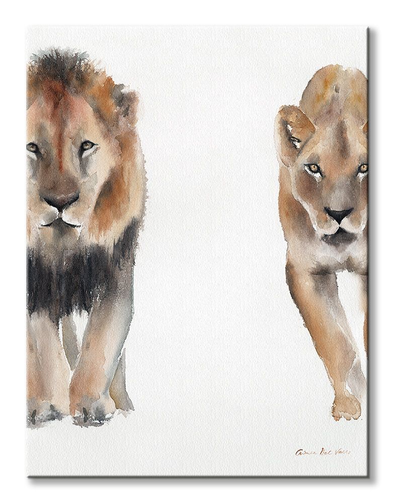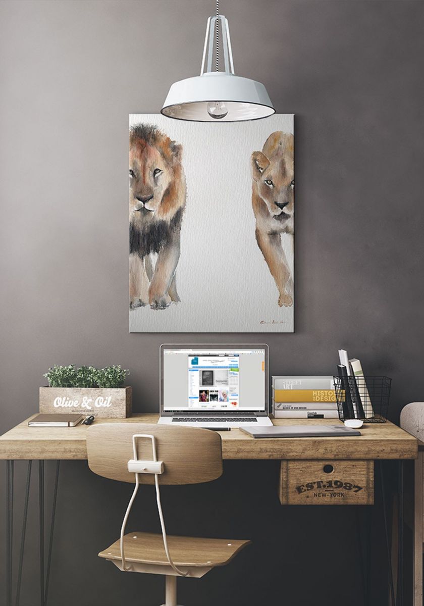 Oryginalny obraz na płótnie Lew i Lwica Oryginalny i licencjonowany obraz na płótnie idealny na każdą ścianę. Nasze obrazy wyróżniają: Fantastyczne barwy Wysokie nasycenie barw i ostrość, kolory utrzymują się przez długie lata. Płótno wysokiej jakości Płótno bawełniane 300g/m2 jest trwałe i mocne, jego struktura jest naturalna. Trwałe kolory, Dodatkowo lakierowana powierzchnia sprawia, że kolory są żywe przez dziesięciolecia. Solidna rama, Wykonana jest z naturalnego, sosnowego drewna, jest mocna i gruba a obraz solidny i wytrzymały. Zadrukowane boki, obrazy posiadają zadrukowane boki, nie potrzebują żadnej dodatkowej oprawy. Szczegóły techniczne: wydruk na płótnie bawełnianym 300g/m2 sosnowe krosna o grubości 2 cm i szerokości 3,5 cm druk cyfrowy wymiary obrazów 60×80 cm