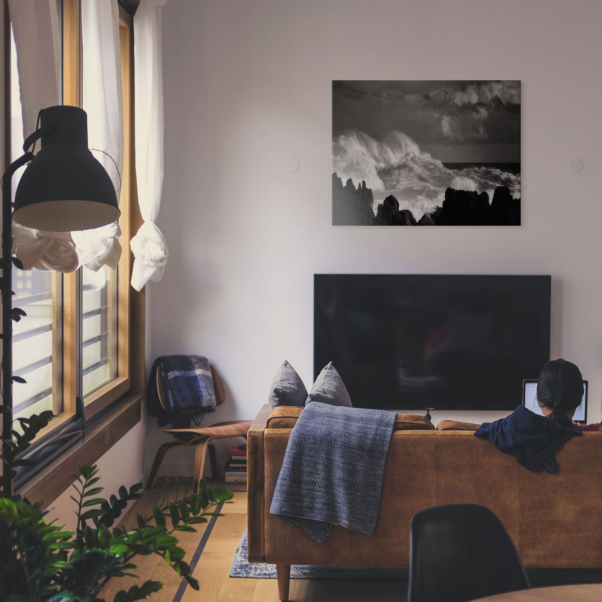 Oceans Rage – obraz na płótnie Naciągnięty na sosnowe krosna. Gotowy do zawieszenia na ścianę. Wykonany z najwyższą dbałością o detale. Obraz jest ostry a barwy nasycone. Ten egzemplarz posiada zadrukowane boki, nie trzeba go dodatkowo oprawiać. Płótno bawełniane na który został naniesiony obraz jest bardzo mocne i posiada ciekawą fakturę. Blejtrama wykonana jest natomiast z grubego drzewa sosnowego. Jest solidna, jej szerokość to 3,5 cm a grubość 2 cm. Kupując ten produkt masz pewność, że kupujesz z legalnego źródła i wspierasz artystów. Obraz jest oryginalny i posiada licencję. Lubisz wyróżniać się ciekawymi, ekskluzywnymi dekoracjami na ścianę? Ten obraz jest idealny dla Ciebie. Nikt nie przejdzie obojętnie obok niego, jest po prostu piękny. Dane techniczne: Płótno bawełniane 300g/m2. Sosnowe krosna o grubości 2 cm i szerokości 3,5 cm. Obraz zadrukowany cyfrowo. Wymiary obrazu 80×60 cm. Marka: Pyramid Posters.