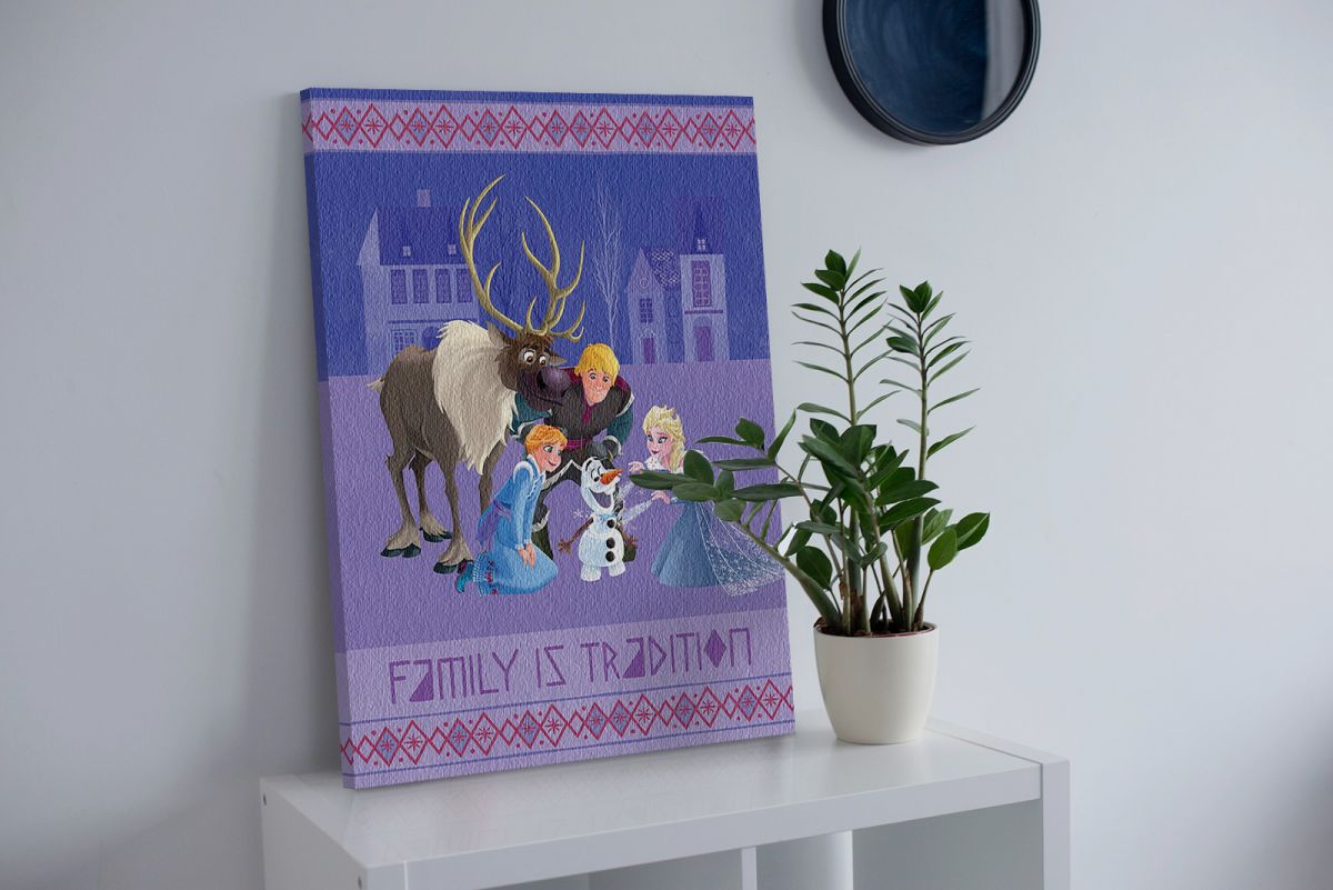 Olaf’s Frozen Adventure Family is Tradition – obraz na płótnie Naciągnięty na sosnowe krosna. Gotowy do zawieszenia na ścianę. Wykonany z najwyższą dbałością o detale. Obraz jest ostry a barwy nasycone. Ten egzemplarz posiada zadrukowane boki, nie trzeba go dodatkowo oprawiać. Płótno bawełniane na który został naniesiony obraz jest bardzo mocne i posiada ciekawą fakturę. Blejtrama wykonana jest natomiast z grubego drzewa sosnowego. Jest solidna, jej szerokość to 3,5 cm a grubość 2 cm. Kupując ten produkt masz pewność, że kupujesz z legalnego źródła i wspierasz artystów. Obraz jest oryginalny i posiada licencję. Lubisz wyróżniać się ciekawymi, ekskluzywnymi dekoracjami na ścianę? Ten obraz jest idealny dla Ciebie. Nikt nie przejdzie obojętnie obok niego, jest po prostu piękny. Dane techniczne: Płótno bawełniane 300g/m2. Sosnowe krosna o grubości 2 cm i szerokości 3,5 cm. Obraz zadrukowany cyfrowo. Wymiary obrazu 60×80 cm. Marka: Pyramid Posters.