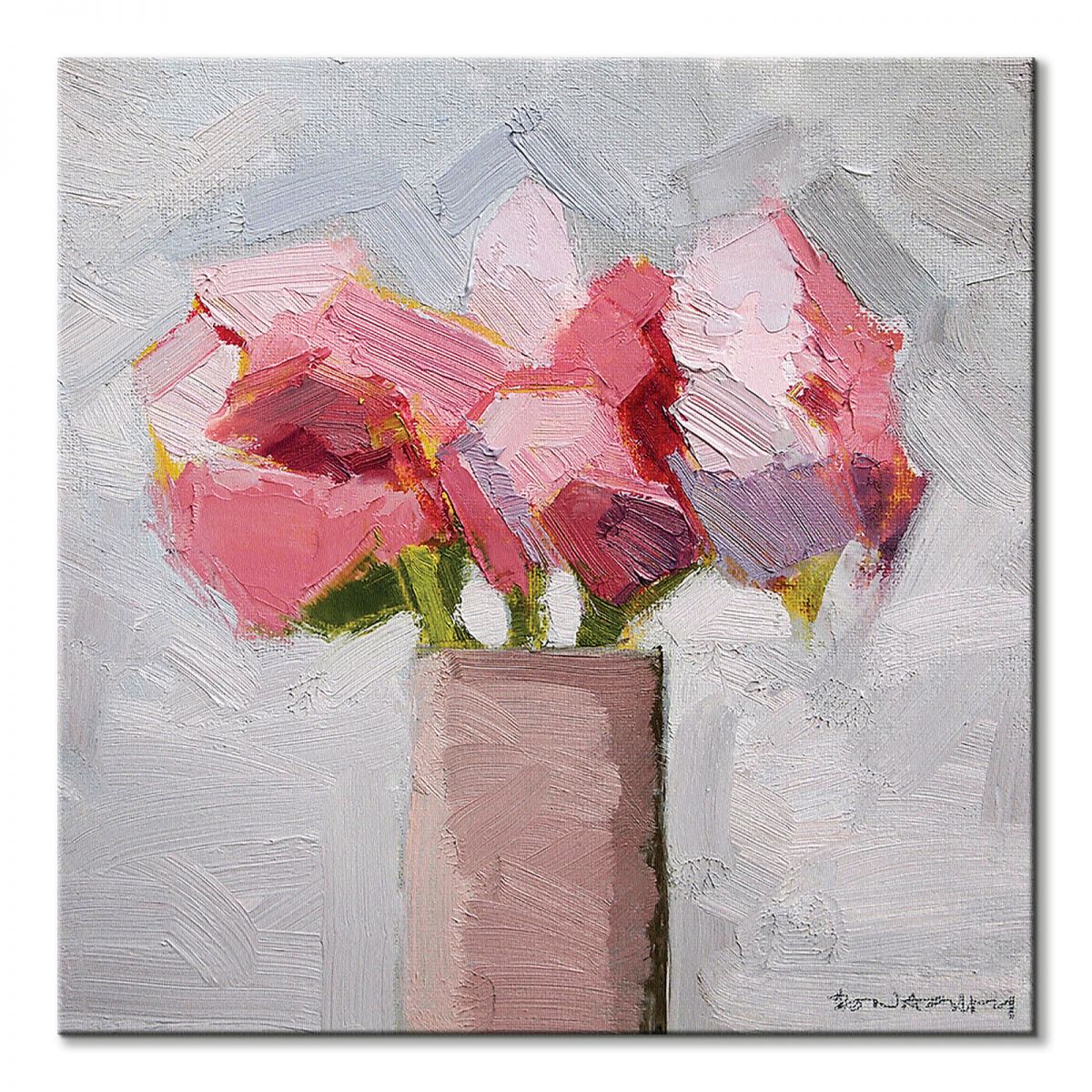 Pink Trio obraz na płótnie naciągnięty na sosnowe krosna. Gotowy do zawieszenia na ścianę. Wykonany z najwyższą dbałością o detale.Obraz jest ostry a barwy nasycone. Ten egzemplarz posiada zadrukowane boki, nie trzeba go dodatkowo oprawiać. Płótno bawełniane na który został naniesiony obraz jest bardzo mocne i posiada ciekawą fakturę. Blejtrama wykonana jest natomiast z grubego drzewa sosnowego. Jest solidna, jej szerokość to 3,5 cm a grubość 2 cm. Kupując ten produkt masz pewność, że kupujesz z legalnego źródła i wspierasz artystów. Obraz jest oryginalny i posiada licencję. Lubisz wyróżniać się ciekawymi, ekskluzywnymi dekoracjami na ścianę ? Ten obraz jest idealny dla Ciebie. Nikt nie przejdzie obojętnie obok niego, jest po prostu piękny. Dane techniczne Płótno bawełniane 300g/m2 Sosnowe krosnao grubości 2 cm i szerokości 3,5 cm Obraz zadrukowany cyfrowo Wymiary obrazu 40×40 cm