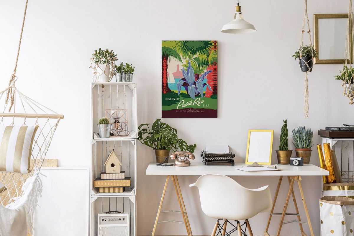 Puerto Rico- obraz na płótnie Naciągnięty na sosnowe krosna. Gotowy do zawieszenia na ścianę. Wykonany z najwyższą dbałością o detale. Obraz jest ostry a barwy nasycone. Ten egzemplarz posiada zadrukowane boki, nie trzeba go dodatkowo oprawiać. Płótno bawełniane na który został naniesiony obraz jest bardzo mocne i posiada ciekawą fakturę. Blejtrama wykonana jest natomiast z grubego drzewa sosnowego. Jest solidna, jej szerokość to 3,5 cm a grubość 2 cm. Kupując ten produkt masz pewność, że kupujesz z legalnego źródła i wspierasz artystów. Obraz jest oryginalny i posiada licencję. Lubisz wyróżniać się ciekawymi, ekskluzywnymi dekoracjami na ścianę? Ten obraz jest idealny dla Ciebie. Nikt nie przejdzie obojętnie obok niego, jest po prostu piękny. Dane techniczne Płótno bawełniane 300g/m2 Sosnowe krosnao grubości 2 cm i szerokości 3,5 cm Obraz zadrukowany cyfrowo Wymiary obrazu 30×40 cm