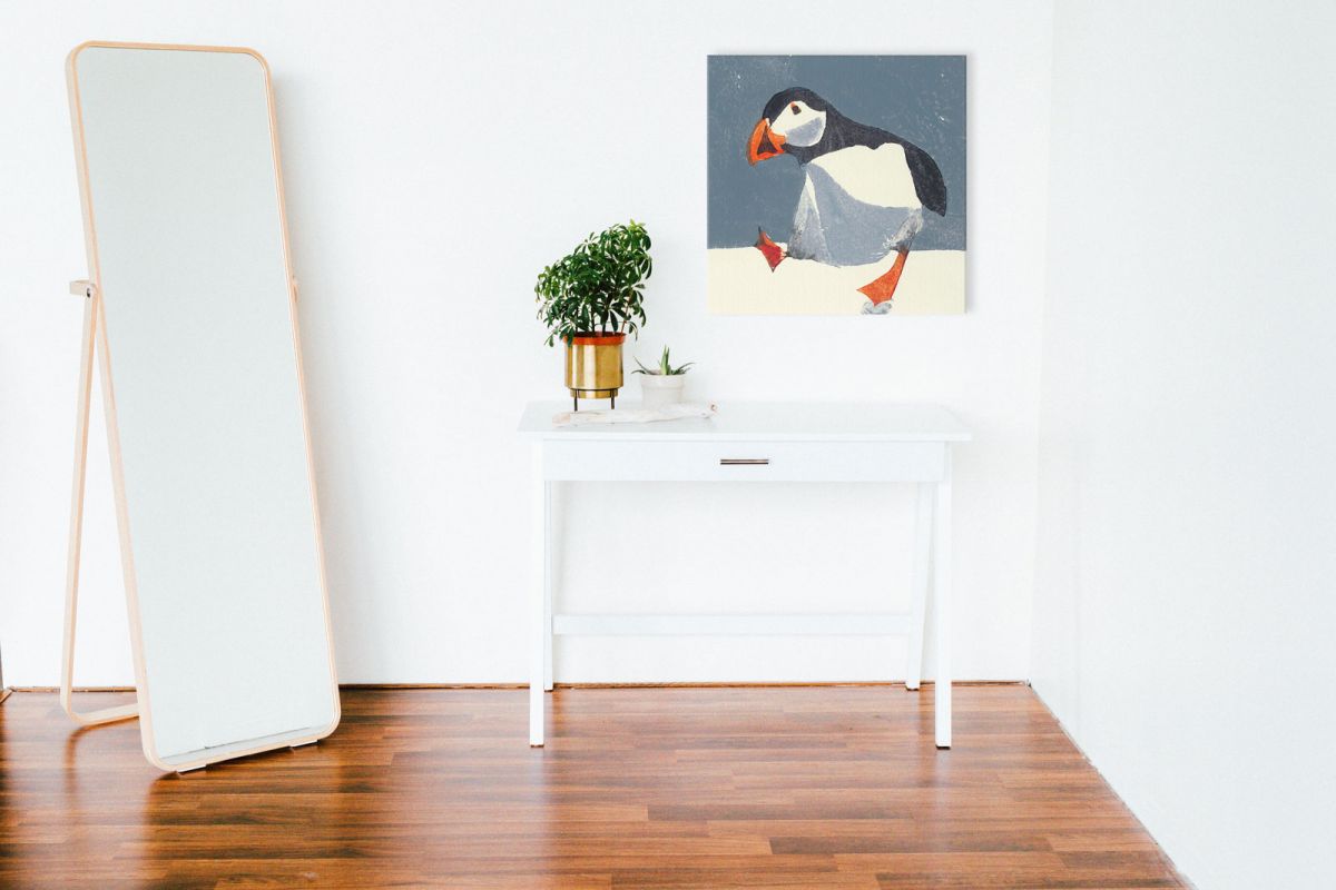 Puffin- obraz na płótnie Naciągnięty na sosnowe krosna. Gotowy do zawieszenia na ścianę. Wykonany z najwyższą dbałością o detale. Obraz jest ostry a barwy nasycone. Ten egzemplarz posiada zadrukowane boki, nie trzeba go dodatkowo oprawiać. Płótno bawełniane na który został naniesiony obraz jest bardzo mocne i posiada ciekawą fakturę. Blejtrama wykonana jest natomiast z grubego drzewa sosnowego. Jest solidna, jej szerokość to 3,5 cm a grubość 2 cm. Kupując ten produkt masz pewność, że kupujesz z legalnego źródła i wspierasz artystów. Obraz jest oryginalny i posiada licencję. Lubisz wyróżniać się ciekawymi, ekskluzywnymi dekoracjami na ścianę? Ten obraz jest idealny dla Ciebie. Nikt nie przejdzie obojętnie obok niego, jest po prostu piękny. Dane techniczne Płótno bawełniane 300g/m2 Sosnowe krosnao grubości 2 cm i szerokości 3,5 cm Obraz zadrukowany cyfrowo Wymiary obrazu 60×60 cm