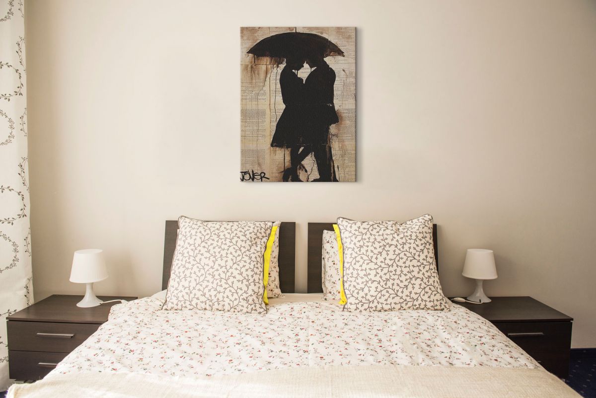 Oryginalny obraz na płótnie noszący nazwę Rain Lovers. Autorstwa: Loui Jover Szukasz oryginalnej, ekskluzywnej dekoracji na ścianę ? Ten obraz jest dla Ciebie! Fantastyczne barwy, obrazy charakteryzuje wysokie nasycenie barw i ostrość, nie sposób oderwać od nich wzrok. Kolory utrzymują się przez długie lata. Płótno wysokiej jakości, obrazy wykonane na płótnie bawełnianym 300g/m2 są mocne i trwałe, świetnie rozkłada się na nich farba a struktura płótna jest naturalna. Lubisz produkty markowe ? obraz jest oryginalny, to oficjalne wydanie licencjonowanego producenta. Trwałe kolory, dzięki dodatkowo lakierowanej powierzchni kolory są żywe przez dziesięciolecia. Solidna rama, blejtrama na której naciągane jest płótno wykonana jest z naturalnego, sosnowego drewna. Jest mocna i gruba. Obraz jest trwały i solidny. Zadrukowane boki, każdy egzemplarz posiada zadrukowane boki, dzięki temu można powiesić obraz na ścianie bez dodatkowej oprawy. Jak zawiesić obraz na ścianie ? Nic prostszego ! Wystarczy gwóźdź w ścianie na którym opiera się górna listwa obrazu. Bezpieczna wysyłka Dbamy o bezpieczeństwo obrazów podczas transportu. Każda przesyłka jest ubezpieczona a obraz zapakowany jest w solidne, specjalnie zaprojektowane pudełko. Szczegóły techniczne: wydruk na płótnie bawełnianym 300g/m2 sosnowe krosna o grubości 2 cm i szerokości 3,5 cm druk cyfrowy wymiary obrazów 60×80 cm marka: Pyramid Posters