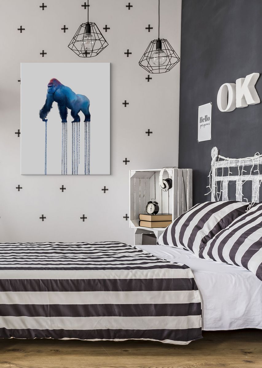 Silverback Gorilla- obraz na płótnie Naciągnięty na sosnowe krosna. Gotowy do zawieszenia na ścianę. Wykonany z najwyższą dbałością o detale. Obraz jest ostry a barwy nasycone. Ten egzemplarz posiada zadrukowane boki, nie trzeba go dodatkowo oprawiać. Płótno bawełniane na który został naniesiony obraz jest bardzo mocne i posiada ciekawą fakturę. Blejtrama wykonana jest natomiast z grubego drzewa sosnowego. Jest solidna, jej szerokość to 3,5 cm a grubość 2 cm. Kupując ten produkt masz pewność, że kupujesz z legalnego źródła i wspierasz artystów. Obraz jest oryginalny i posiada licencję. Lubisz wyróżniać się ciekawymi, ekskluzywnymi dekoracjami na ścianę? Ten obraz jest idealny dla Ciebie. Nikt nie przejdzie obojętnie obok niego, jest po prostu piękny. Dane techniczne Płótno bawełniane 300g/m2 Sosnowe krosnao grubości 2 cm i szerokości 3,5 cm Obraz zadrukowany cyfrowo Wymiary obrazu 60×80 cm