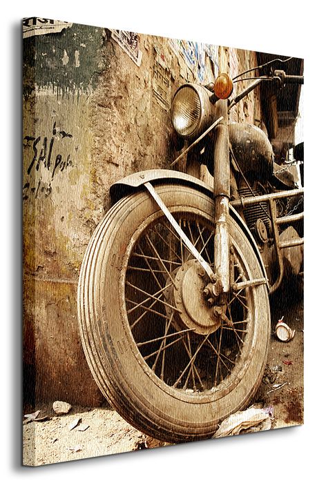 Stary motocykl – Obraz na płótnie naciągnięty na sosnowe krosna, gotowy do zawieszenia na ścianę. Cyfrowa jakość druku, najlepsza dostępna na rynku. Obraz jest ostry a barwy nasycone. Posiada zadrukowane boki, nie trzeba go dodatkowo oprawiać. Płótno na który został naniesiony obraz jest gładkie i bardzo wytrzymałe. Blejtrama wykonana jest natomiast z grubego drzewa sosnowego. Jest solidna, jej szerokość to 3,5 cm a grubość 2 cm. Kupując ten produkt masz pewność, że wspierasz artystów. Obraz jest oryginalny i posiada licencję. Został wyprodukowany w Polsce przez Polskiego producenta. Nikt nie przejdzie obojętnie obok tego obrazu, jest po prostu piękny. Opis techniczny: wydruk na płótnie poliestrowym 210g/m2 sosnowe krosna o grubości 2 cm i szerokości 3,5 cm druk cyfrowy wymiary obrazu 60×80 cm marka: Nice Wall