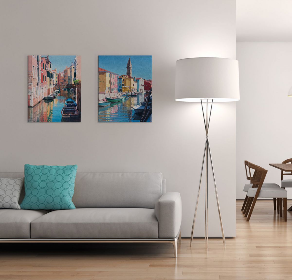 The Colours Of Burano – Obraz na płótnie naciągnięty na sosnowe krosna. Gotowy do zawieszenia na ścianę. Wykonany z najwyższą dbałością o detale.Obraz jest ostry a barwy nasycone. Ten egzemplarz posiada zadrukowane boki, nie trzeba go dodatkowo oprawiać. Płótno bawełniane na który został naniesiony obraz jest bardzo mocne i posiada ciekawą fakturę. Blejtrama wykonana jest natomiast z grubego drzewa sosnowego. Jest solidna, jej szerokość to 3,5 cm a grubość 2 cm. Kupując ten produkt masz pewność, że kupujesz z legalnego źródła i wspierasz artystów. Obraz jest oryginalny i posiada licencję. Lubisz wyróżniać się ciekawymi, ekskluzywnymi dekoracjami na ścianę ? Ten obraz jest idealny dla Ciebie. Nikt nie przejdzie obojętnie obok niego, jest po prostu piękny. Dane techniczne Płótno bawełniane 300g/m2 Sosnowe krosnao grubości 2 cm i szerokości 3,5 cm Obraz zadrukowany cyfrowo Wymiary obrazu 40×50 cm