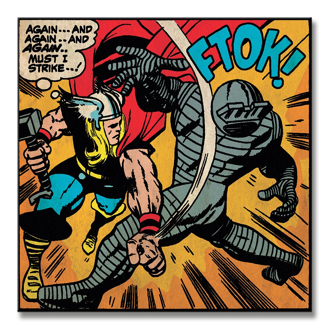 Oryginalny obraz na płótnie noszący nazwę THOR (Must I Strike). Szukasz oryginalnej, ekskluzywnej dekoracji na ścianę ? Ten obraz jest dla Ciebie! Fantastyczne barwy, obrazy charakteryzuje wysokie nasycenie barw i ostrość, nie sposób oderwać od nich wzrok. Kolory utrzymują się przez długie lata. Płótno wysokiej jakości, obrazy wykonane na płótnie bawełnianym 300g/m2 są mocne i trwałe, świetnie rozkłada się na nich farba a struktura płótna jest naturalna. Lubisz produkty markowe ? obraz jest oryginalny, to oficjalne wydanie licencjonowanego producenta. Trwałe kolory, dzięki dodatkowo lakierowanej powierzchni kolory są żywe przez dziesięciolecia. Solidna rama, blejtrama na której naciągane jest płótno wykonana jest z naturalnego, sosnowego drewna. Jest mocna i gruba. Obraz jest trwały i solidny. Zadrukowane boki, każdy egzemplarz posiada zadrukowane boki, dzięki temu można powiesić obraz na ścianie bez dodatkowej oprawy. Jak zawiesić obraz na ścianie ? Nic prostszego ! Wystarczy gwóźdź w ścianie na którym opiera się górna listwa obrazu. Bezpieczna wysyłka Dbamy o bezpieczeństwo obrazów podczas transportu. Każda przesyłka jest ubezpieczona a obraz zapakowany jest w solidne, specjalnie zaprojektowane pudełko. Szczegóły techniczne: wydruk na płótnie bawełnianym 300g/m2 sosnowe krosna o grubości 2 cm i szerokości 3,5 cm druk cyfrowy wymiary obrazów 40×40 cm marka: Pyramid Posters