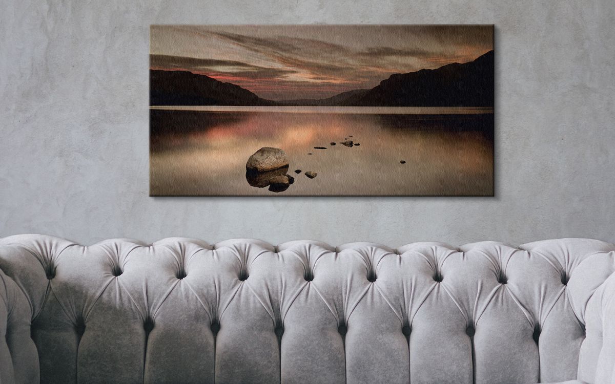 Ullswater Rocks – Obraz na płótnie naciągnięty na sosnowe krosna. Gotowy do zawieszenia na ścianę. Wykonany z najwyższą dbałością o detale.Obraz jest ostry a barwy nasycone. Ten egzemplarz posiada zadrukowane boki, nie trzeba go dodatkowo oprawiać. Płótno bawełniane na który został naniesiony obraz jest bardzo mocne i posiada ciekawą fakturę. Blejtrama wykonana jest natomiast z grubego drzewa sosnowego. Jest solidna, jej szerokość to 3,5 cm a grubość 2 cm. Kupując ten produkt masz pewność, że kupujesz z legalnego źródła i wspierasz artystów. Obraz jest oryginalny i posiada licencję. Lubisz wyróżniać się ciekawymi, ekskluzywnymi dekoracjami na ścianę ? Ten obraz jest idealny dla Ciebie. Nikt nie przejdzie obojętnie obok niego, jest po prostu piękny. Dane techniczne Płótno bawełniane 300g/m2 Sosnowe krosnao grubości 2 cm i szerokości 3,5 cm Obraz zadrukowany cyfrowo Wymiary obrazu 100×50 cm