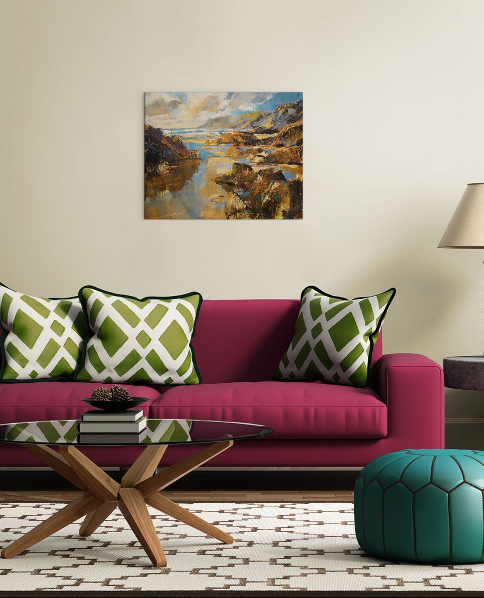 Waves And Evening Sun, North Cornwall – Obraz na płótnie naciągnięty na sosnowe krosna. Gotowy do zawieszenia na ścianę. Wykonany z najwyższą dbałością o detale.Obraz jest ostry a barwy nasycone. Ten egzemplarz posiada zadrukowane boki, nie trzeba go dodatkowo oprawiać. Płótno bawełniane na który został naniesiony obraz jest bardzo mocne i posiada ciekawą fakturę. Blejtrama wykonana jest natomiast z grubego drzewa sosnowego. Jest solidna, jej szerokość to 3,5 cm a grubość 2 cm. Kupując ten produkt masz pewność, że kupujesz z legalnego źródła i wspierasz artystów. Obraz jest oryginalny i posiada licencję. Lubisz wyróżniać się ciekawymi, ekskluzywnymi dekoracjami na ścianę ? Ten obraz jest idealny dla Ciebie. Nikt nie przejdzie obojętnie obok niego, jest po prostu piękny. Dane techniczne Płótno bawełniane 300g/m2 Sosnowe krosnao grubości 2 cm i szerokości 3,5 cm Obraz zadrukowany cyfrowo Wymiary obrazu 40×50 cm