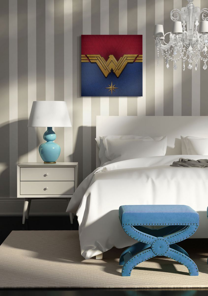 Wonder Woman Emblem- obraz na płótnie Naciągnięty na sosnowe krosna. Gotowy do zawieszenia na ścianę. Wykonany z najwyższą dbałością o detale. Obraz jest ostry a barwy nasycone. Ten egzemplarz posiada zadrukowane boki, nie trzeba go dodatkowo oprawiać. Płótno bawełniane na który został naniesiony obraz jest bardzo mocne i posiada ciekawą fakturę. Blejtrama wykonana jest natomiast z grubego drzewa sosnowego. Jest solidna, jej szerokość to 3,5 cm a grubość 2 cm. Kupując ten produkt masz pewność, że kupujesz z legalnego źródła i wspierasz artystów. Obraz jest oryginalny i posiada licencję. Lubisz wyróżniać się ciekawymi, ekskluzywnymi dekoracjami na ścianę? Ten obraz jest idealny dla Ciebie. Nikt nie przejdzie obojętnie obok niego, jest po prostu piękny. Dane techniczne Płótno bawełniane 300g/m2 Sosnowe krosnao grubości 2 cm i szerokości 3,5 cm Obraz zadrukowany cyfrowo Wymiary obrazu 40×40 cm