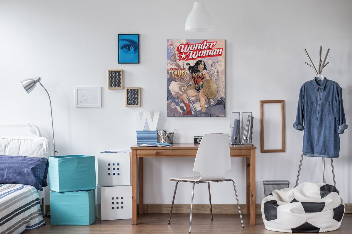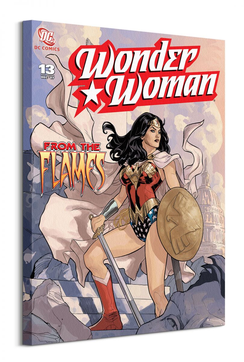 Wonder Woman (From The Flames) obraz na płótnie naciągnięty na sosnowe krosna. Gotowy do zawieszenia na ścianę. Wykonany z najwyższą dbałością o detale.Obraz jest ostry a barwy nasycone. Ten egzemplarz posiada zadrukowane boki, nie trzeba go dodatkowo oprawiać. Płótno bawełniane na który został naniesiony obraz jest bardzo mocne i posiada ciekawą fakturę. Blejtrama wykonana jest natomiast z grubego drzewa sosnowego. Jest solidna, jej szerokość to 3,5 cm a grubość 2 cm. Kupując ten produkt masz pewność, że kupujesz z legalnego źródła i wspierasz artystów. Obraz jest oryginalny i posiada licencję. Lubisz wyróżniać się ciekawymi, ekskluzywnymi dekoracjami na ścianę ? Ten obraz jest idealny dla Ciebie. Nikt nie przejdzie obojętnie obok niego, jest po prostu piękny. Dane techniczne Płótno bawełniane 300g/m2 Sosnowe krosnao grubości 2 cm i szerokości 3,5 cm Obraz zadrukowany cyfrowo Wymiary obrazu 60×80 cm