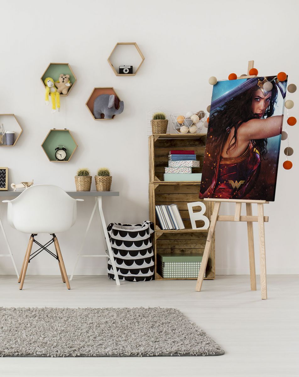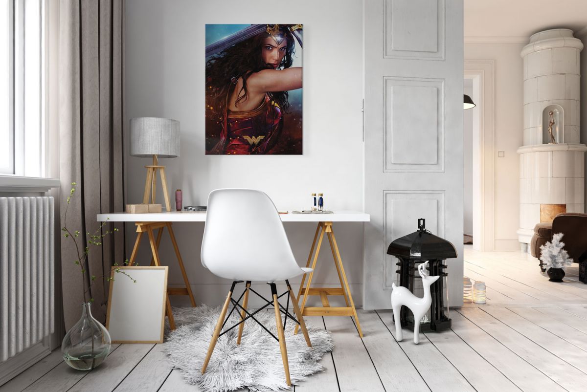 Wonder Woman (Wonder) obraz na płótnie naciągnięty na sosnowe krosna. Gotowy do zawieszenia na ścianę. Wykonany z najwyższą dbałością o detale.Obraz jest ostry a barwy nasycone. Ten egzemplarz posiada zadrukowane boki, nie trzeba go dodatkowo oprawiać. Płótno bawełniane na który został naniesiony obraz jest bardzo mocne i posiada ciekawą fakturę. Blejtrama wykonana jest natomiast z grubego drzewa sosnowego. Jest solidna, jej szerokość to 3,5 cm a grubość 2 cm. Kupując ten produkt masz pewność, że kupujesz z legalnego źródła i wspierasz artystów. Obraz jest oryginalny i posiada licencję. Lubisz wyróżniać się ciekawymi, ekskluzywnymi dekoracjami na ścianę ? Ten obraz jest idealny dla Ciebie. Nikt nie przejdzie obojętnie obok niego, jest po prostu piękny. Dane techniczne Płótno bawełniane 300g/m2 Sosnowe krosnao grubości 2 cm i szerokości 3,5 cm Obraz zadrukowany cyfrowo Wymiary obrazu 60×80 cm